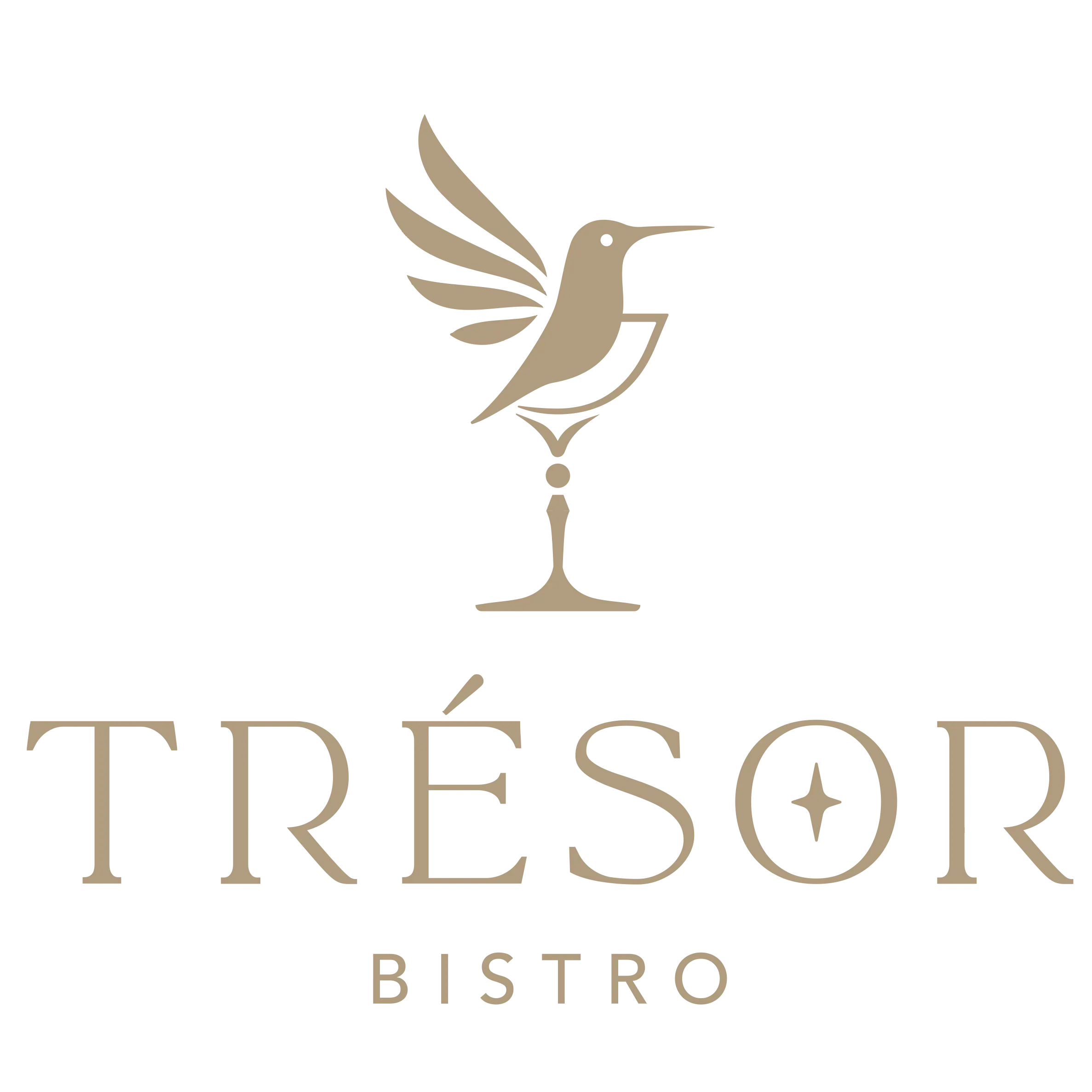 優雅的酒杯,代表著 Bistro 的輕鬆氛圍與精選酒品,是盛滿美好時光的容器。輕盈的蜂鳥,象徵著自由與探索的精神,引領著我們不斷尋找、發現生活中的美好。停駐在酒杯之上,在品味著杯中的甘醇。